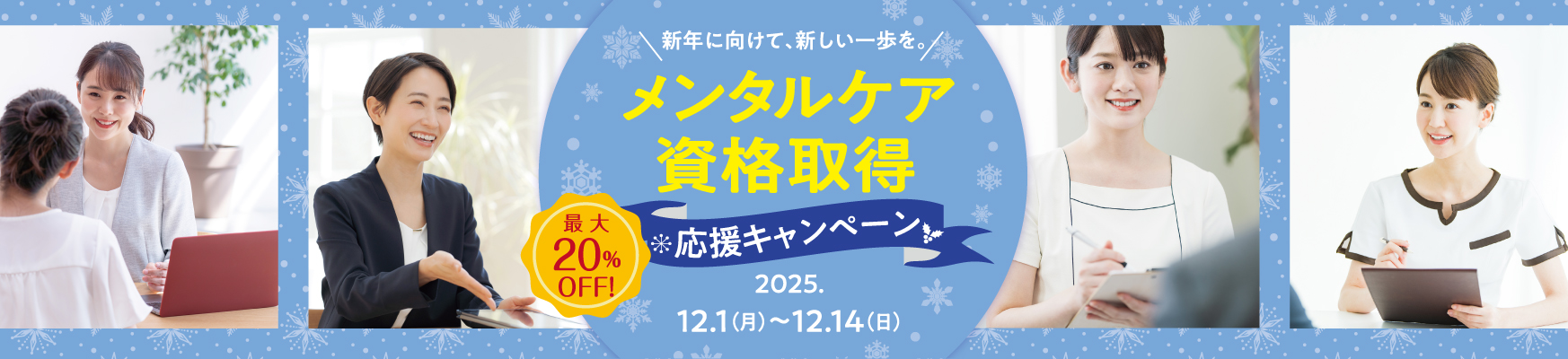 今なら、人気のメンタルケア講座が最大20%OFFになる特別キャンペーンを実施中です。