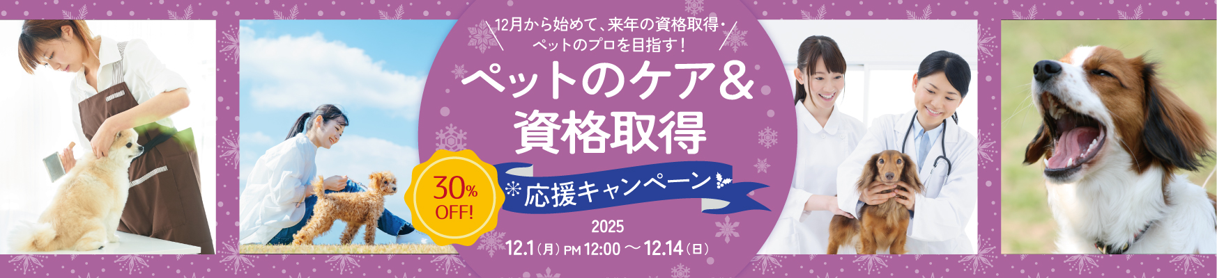 今なら、人気のトリマー講座を含む対象講座が30%OFFになる特別キャンペーンを実施中です。