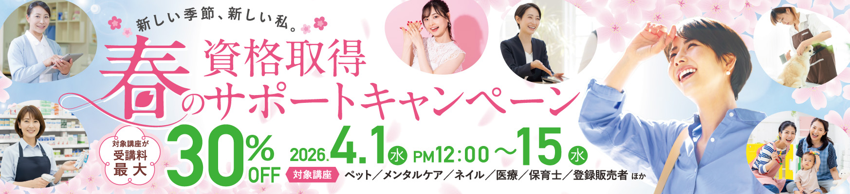 今なら人気の対象講座が最大30%OFFで受講できる、特別なサポートキャンペーンを実施中です。