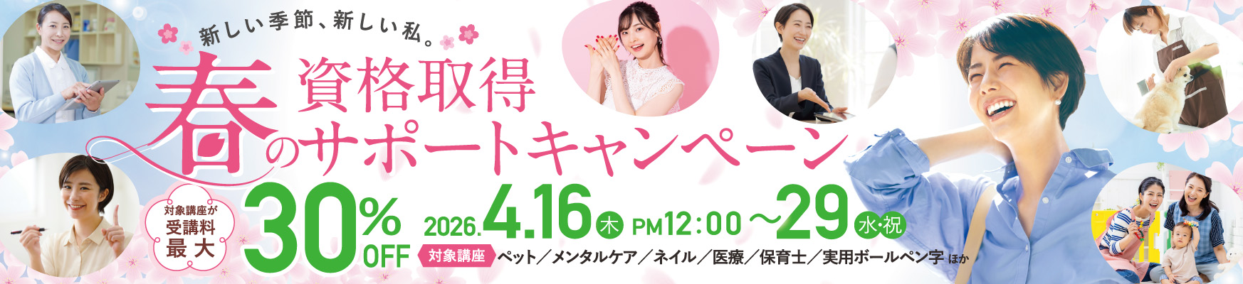 (30%OFF)新しい季節、新しい私。春の資格取得サポートキャンペーン 第二弾