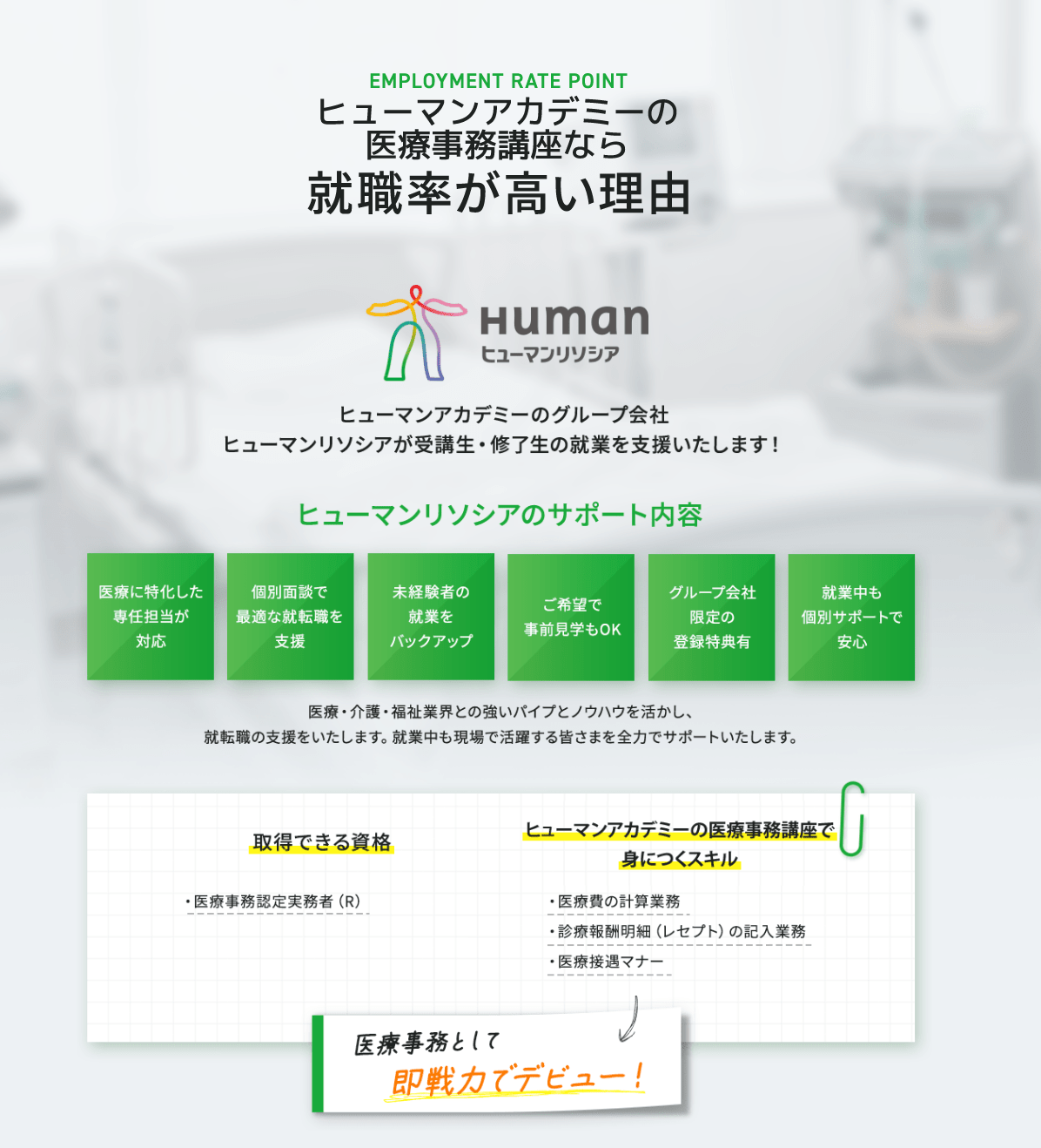 講座修了後は、ヒューマングループが就職まで全力でバックアップします。