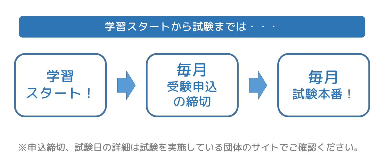 試験は毎月実施、進捗に合わせてチャレンジできます